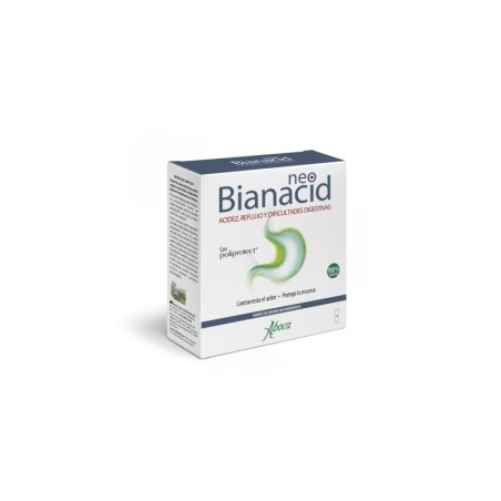 NeoBianacid está indicado para el tratamiento de los trastornos relacionado! con la acidez, como ardor, dolor, reflujo gastroesofágico y gastritis. Además, está indicado para el tratamiento de los síntomas asociados a la dispepsia (dificultades digestivas), como ardor, pesadez y meteorismo. NeoBianacid puede resultar útil como prevención en las situaciones que pueden provocar irritaciones de la mucosa (administración de medicamentos antiinflamatorios/analgésicos no esteroideos, periodos de estrés psicofísico, cambios de estación, alimentación y estilos de vida inadecuados). El producto es apto para su empleo durante el embarazo, la lactancia y para niños mayores de 6 años. NeoBianacid es un producto con ingredientes de agricultura biológica, sin gluten y de sabor agradable. NeoBianacid, gracias a su mecanismo de acción, puede utilizarse en asociación con inhibidores de la bomba de protones y antagonistas H2 y también en los periodos de suspensión del tratamiento, siguiendo las indicaciones del médico.