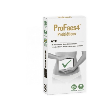 ProFaes4® ATB es una combinación de probióticos Lab4 y Saccharomyces boulardii que contribuyen al mantenimiento en buen estado de la microbiota intestinal.