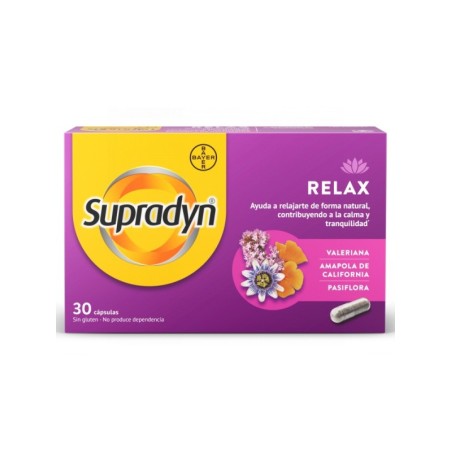 Supradyn® relax es un capsula con valeriana, amapola de california y pasiflora que te ayuda a relajarte de forma natural, contribuyendo a la calma y tranquilidad